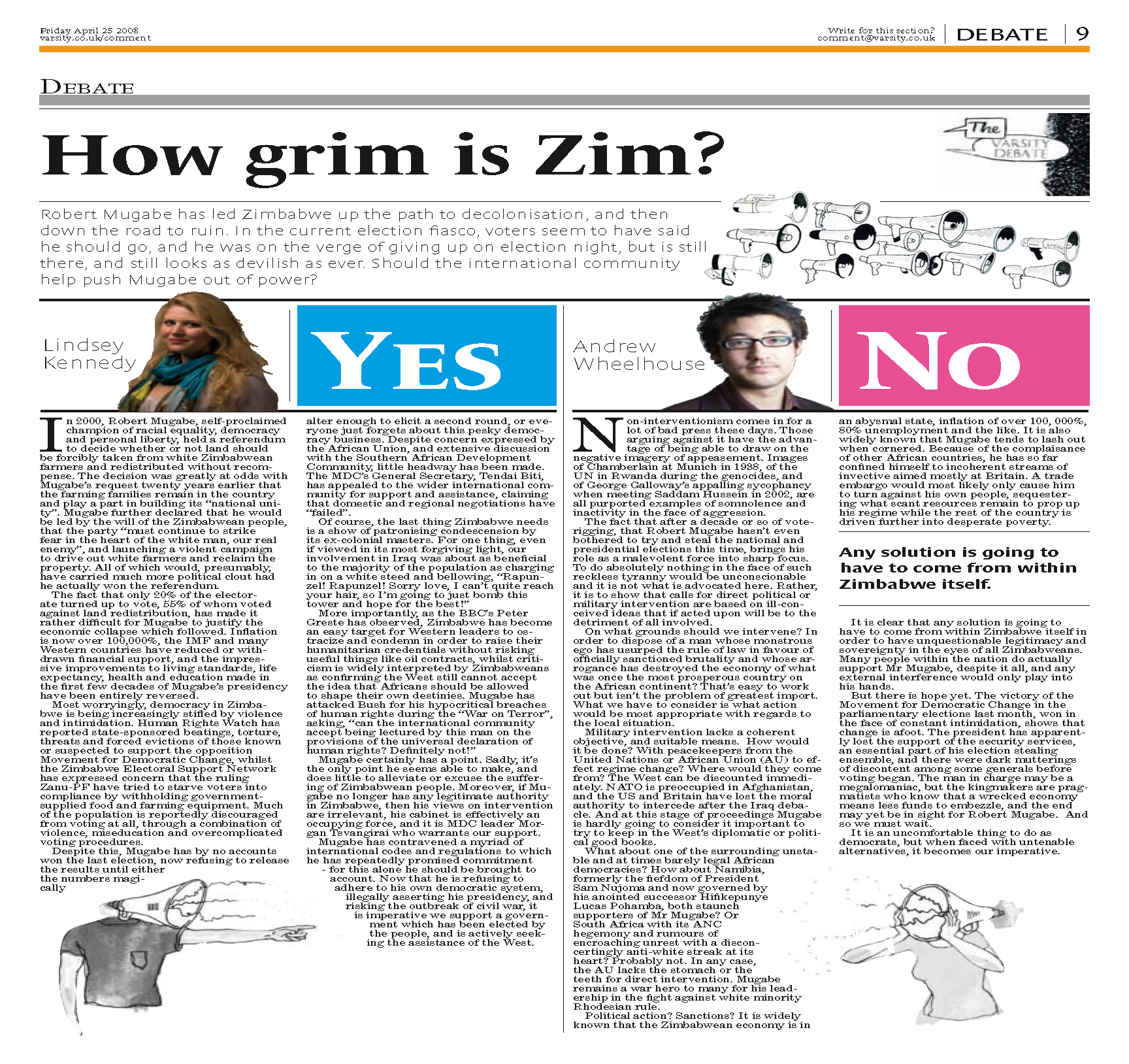 How Grim is Zim? [Debate] (Varsity Newspaper)